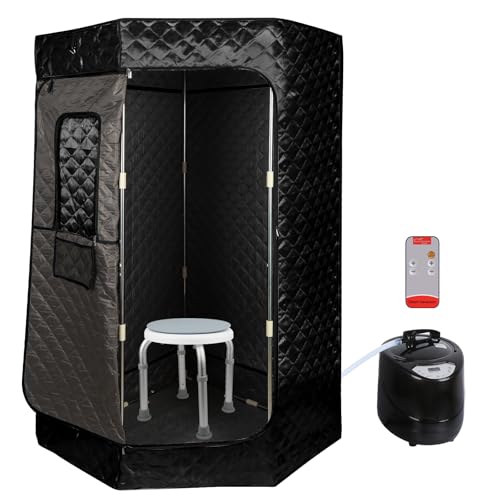 SereneLife Bärbar ångbastu i full storlek. Personligt spa hemma, med fjärrkontroll, hopfällbar stol och timer
