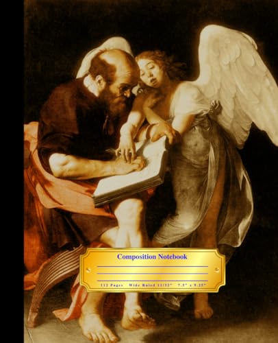 Composition Notebook - 7.5" x 9.25" - 112 Pages to Write - Wide Ruled 11/32" - Modern Layout - Numbered Pages - For School and Office Work - Cover ... Matthew and the Angel" by Caravaggio (1602)