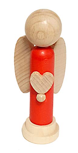 Hess Holzspielzeug 40041 - ängel av trä, med hjärta, rödmålad, ca 12 cm, tillverkad i Erzgebirge, som en presentidé, dekoration och för ängelälskare