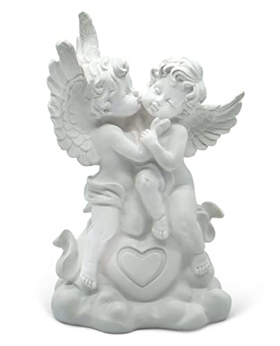 Stort par änglar som dekorativ figur - vacker ängelfigur med hjärta 25 cm hög gjord av marmorit i vitt - skulptur deco ängel som dekoration - ängel som en symbol för bandet mellan två människor