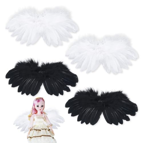 AHANDMAKER 4 st mini änglar vingar för hantverk svart och vit fjäder ängel vingar mjuka fluffiga vingar för hemlagade ornament gosedjur dekoration (3,5 x 7,5 (5) cm)