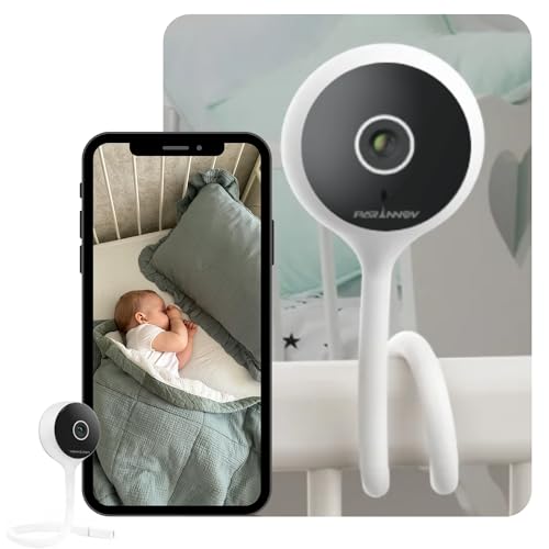 PARINNOV 3MP videobabyvakt, WiFi babykamera, gråtdetektering, mörkerseende, walkie-talkie, temperatur- och fuktighetsövervakning, flexibel och justerbar monteringsstång, vaggvisor, Ljudvarning, Alexa