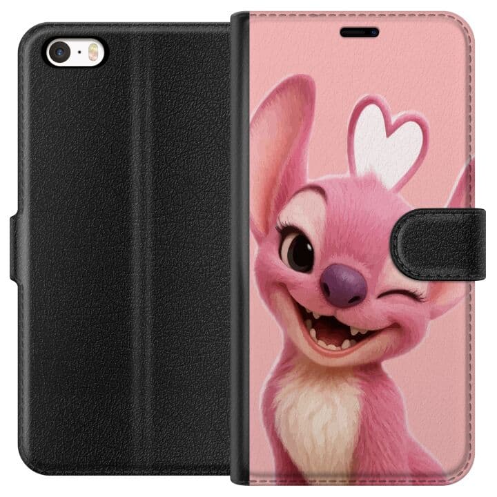 Apple iPhone SE (2016) Plånboksfodral Ängel rosa figur blinkar gullig design med hjärta kärlek lekfullhet och söt energi i pastellfärger