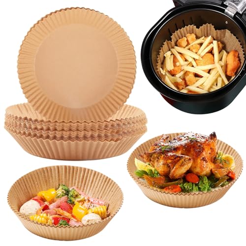 Bakpapper för varmluftsfritös, 100 stycken 20–24 cm non-stick vattentät oljesäker engångsskålar liner för luftfryer, ugn, mikrovågsugn, ångkokare