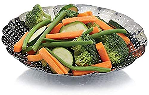 Ångkorg för grönsaker, ångkorg i rostfritt stål, ångkokt inlägg, 20 cm inre diameter, tillverkad av 304 rostfritt stål av livsmedelskvalitet, hållbart, tillagas hälsosammare, snabbare