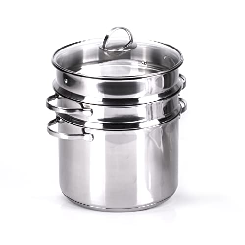INOXPRAN 540629, Rostfritt stål Stearinpasta, Ångkorg med 22 cm glaslock, Kruka och skål Tillsammans, Användbar i gas, Elektrisk platta och keramisk glas
