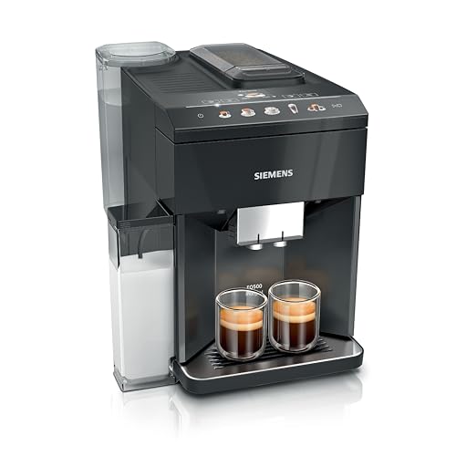 SIEMENS Integral TQ515D09 Helautomatisk kaffemaskin EQ500, många kaffespecialiteter, mjölkskummare, integrerad mjölkbehållare, dubbel huvudfunktion, automatisk ångrengöring, 1 500 W, pianolack