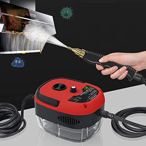 Ångrengörare, 2 500 W 3 bar mångsidig ångtvätt, ångtvätt med 2 x borstborste och 1 x stålborste, bärbar för rengöring av soffa, kakel, golv, fönster, bil, stoppning (röd)
