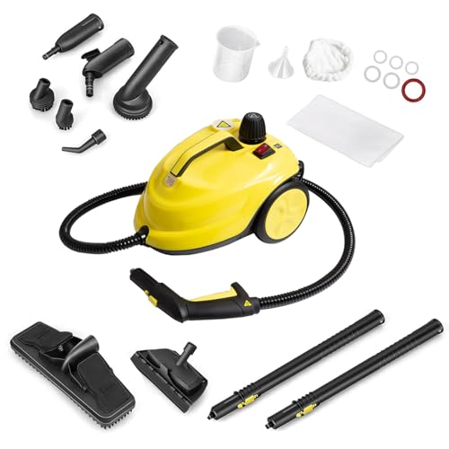 Ångrengörare, ångtvätt golv med 10 tillbehör, 3,5 bar ångtryck 380 ml 1050 W – ångtvätt handenhet för golv, stoppade möbler, fogar och bilar, tar bort smuts och fett
