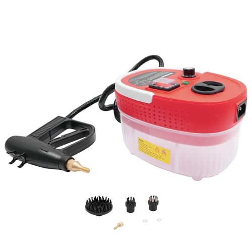 Ångrengörare, 2 500 W 3 bar mångsidig ångtvätt, ångtvätt med 2 x borstborste och 1 x stålborste, bärbar ångtvätt för rengöring, soffa, kakel, golv, fönster, bil, stoppning (röd)