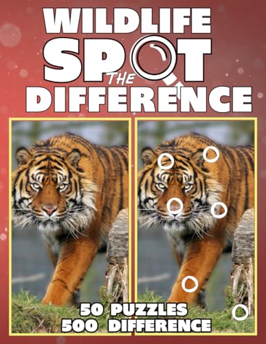 Wildlife Spot the Difference: Puzzle Book for Adults 500 Hard-to-Find Differences in 50 Realistic animal Picture Scenes | Large Print Brain Games for Relaxation & Fun.