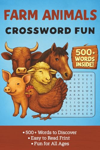 FARM ANIMALS CROSSWORD FUN for Kids: Animal Crossword Puzzles for Kids Ages 6–10 | 500+ Words, 6x9, Fun Facts & Farm Friends Inside!