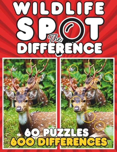 Wildlife Spot the Difference Book for Adults: 600 Animal Differences to Find | 60 Full-Color Jungle & Forest Picture Puzzles | Large Print Puzzle Book