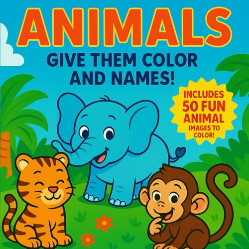Animals: Give Them Color And Names!: Fun and Easy Animal Coloring Pages for Kids Ages 3-8