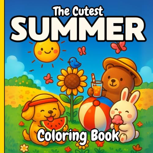The Cutest Summer Coloring Book: A Cute and Simple Coloring Book for Kids and Adults, 40 Illustrations Featuring Cute Drawings, Sunny Travel Coloring pages and Cute Summer Animal Coloring Pages