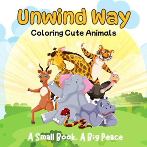 Unwind Way: Adults and Kids Coloring book: 40 Cute and Easy Animal Coloring Pages for Relaxation, Stress Relief, and Mindful Fun