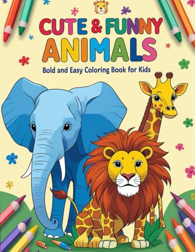 Cute & Funny Animals Bold and Easy Coloring Book for Kids Ages 3-6: Fun and Simple Animal Coloring Pages for Toddlers, Preschoolers, and Kindergarten Boys & Girls