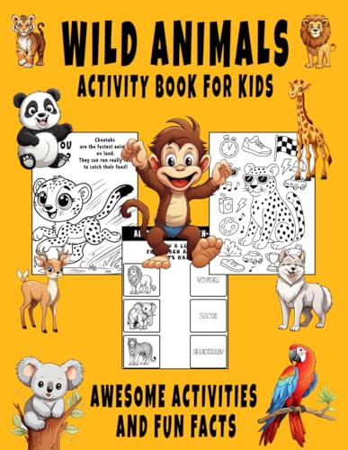 Wild Animals Activity Book for Kids: An Interactive Learning Experience with Animal Coloring Pages, Mazes, Word Searches, Matching Games, Fun Facts, and More for Curious Young Learners