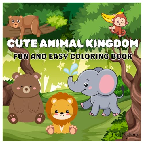 Cute Animal Kingdom Coloring Book: Fun and Easy Animal Coloring Pages for Toddlers and Young Children | Lions, Elephants, Bunnies, and More