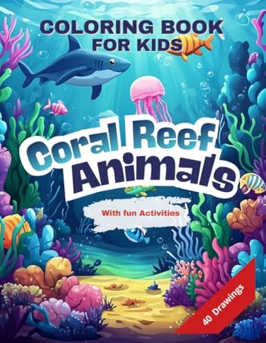 Coral Reef Animal Coloring Book: An aquatic adventure with fun activities! 40 coloring pages for kids ages 4-8