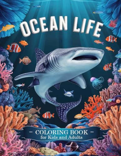 Ocean Life Coloring Book for Kids and Adults: Cute Marine Animal Scenes with Whales, Dolphins and Colorful Coral, Great for Mindfulness and Stress Relief