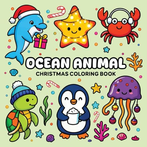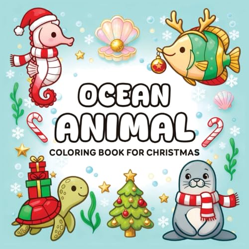 Ocean Animal Christmas Coloring Book: 50 Playful Illustrations of Festive Fish, Coral Reefs, and Marine Christmas Magic, For Kids Adults