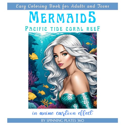 MERMAIDS PACIFIC TIDE CORAL REEF * EASY COLORING BOOK for Adults and Teens: ֍8.5x8.5 SQUARE֎ Fantasy Nature Floral Botanical Sealife Marine Animal Watching Art Lover GIFT