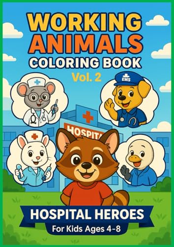Working Animals Coloring Book Vol. 2: Hospital Heroes: Cute Animal Doctors, Nurses & Hospital Helpers for Kids Ages 4–8