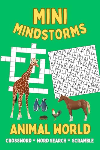 Mini Mindstorms Animal World Crossword Word Search Scramble: 45+ Variety Puzzles Small Pocket Travel Size Portable Compact Easy Medium Relaxation for Adults with Answer Keys Solutions