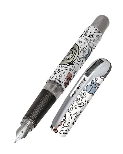 Online College Angry Animal reservoarpenna för högerhänta personer, ergonomiskt handtag, medium iridiumspets, standard bläckpatroner, med blå patron, lämplig för allergiker