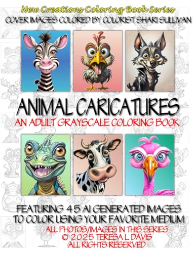 New Creations Coloring Book Series: Animal Caricatures: An adult grayscale coloring book (coloring book for grownups) featuring A.I. generated images ... your favorite medium, suitable for framing.