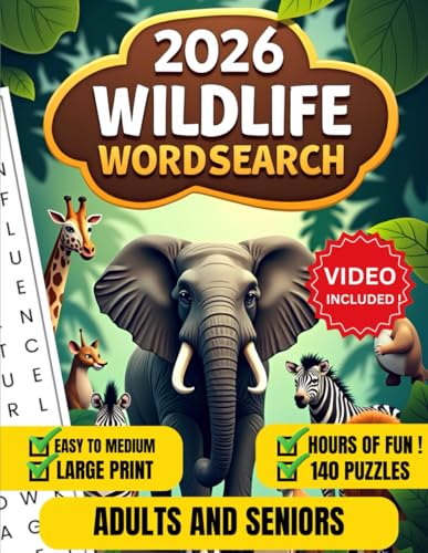 Wildlife Wordsearch: Word Search Book For Adults & Seniors, Easy To Medium Difficulty, Large Print With 140 Puzzles. Enjoy This Animal & Nature Themed ... Plus An Interesting Video About Wildlife.