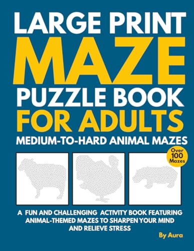 Large Print Maze Puzzle Book for Adults: Medium-to-Hard Animal Mazes Over 100 Mazes: A Fun and Challenging Activity Book Featuring Animal-Themed Mazes to Sharpen Your Mind and Relieve Stress