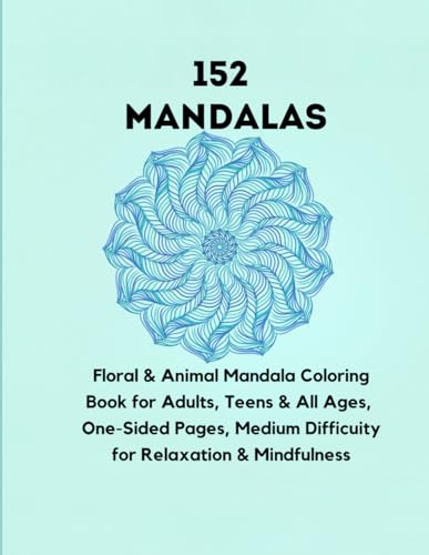 152 Mandalas: Floral & Animal Mandala Coloring Book for Adults, Teens & All Ages, One-Sided Pages, Medium Difficuity for Relaxation & Mindfulness