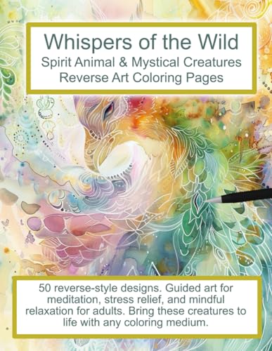 Whispers of the Wild. Spirit Animal & Mystical Creatures Reverse Art Coloring Pages: 50 reverse-style designs. Guided art for meditation, stress ... creatures to life with any coloring medium.