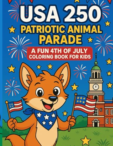 USA 250: Patriotic Animal Parade – A Fun 4th of July Coloring Book for Kids: Celebrate America's 250th Birthday with Cute Animal Characters, Fireworks, and Flags – Perfect for Ages 4–8!