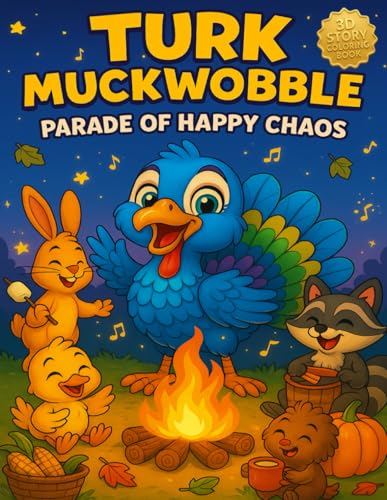 Turk MuckWobble Parade of Happy Chaos: Coloring Book for Adults and Teens Featuring Cute Barn Animal Characters in Cozy Hygge Moments for Relaxation