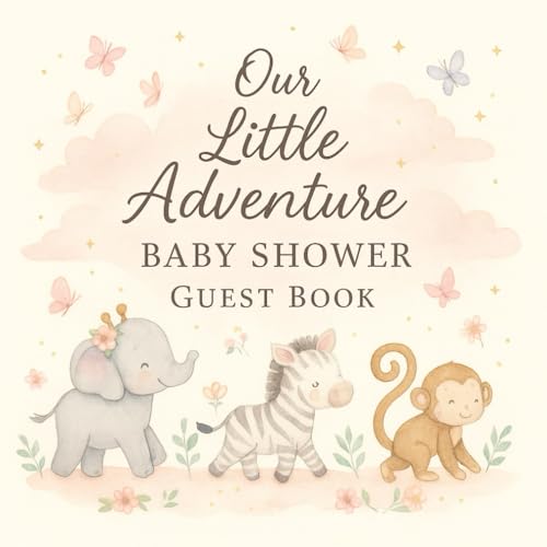 Our Little Adventure: Baby Shower Guest Book with Safari Animals: A Pastel Watercolor Animal parade, Keepsake with Guest Sign-Ins, Wishes for Baby, and Gift Log Pages, Full-Color