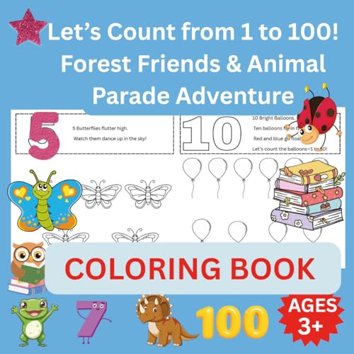 Let’s Count from 1 to 100! Forest Friends and Animal Parade Adventure — Coloring Book, Ages 3+: Learn to Count by Ones and Tens with Fun Animal Friends!