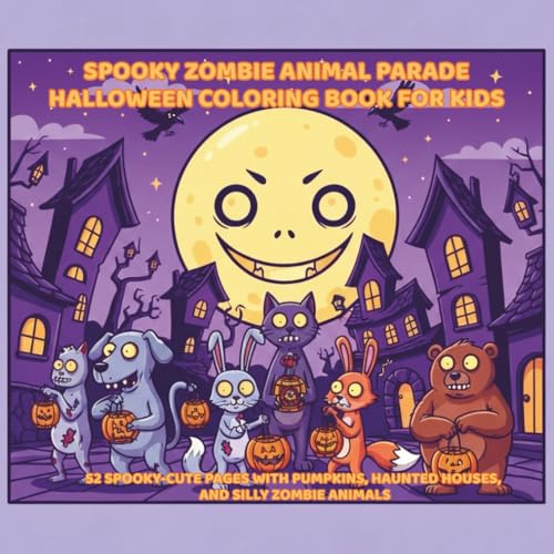 SPOOKY ZOMBIE ANIMAL PARADE HALLOWEEN COLORING BOOK FOR KID: 52 Spooky-Cute Pages with Pumpkins, Haunted Houses, and Silly Zombie Animals