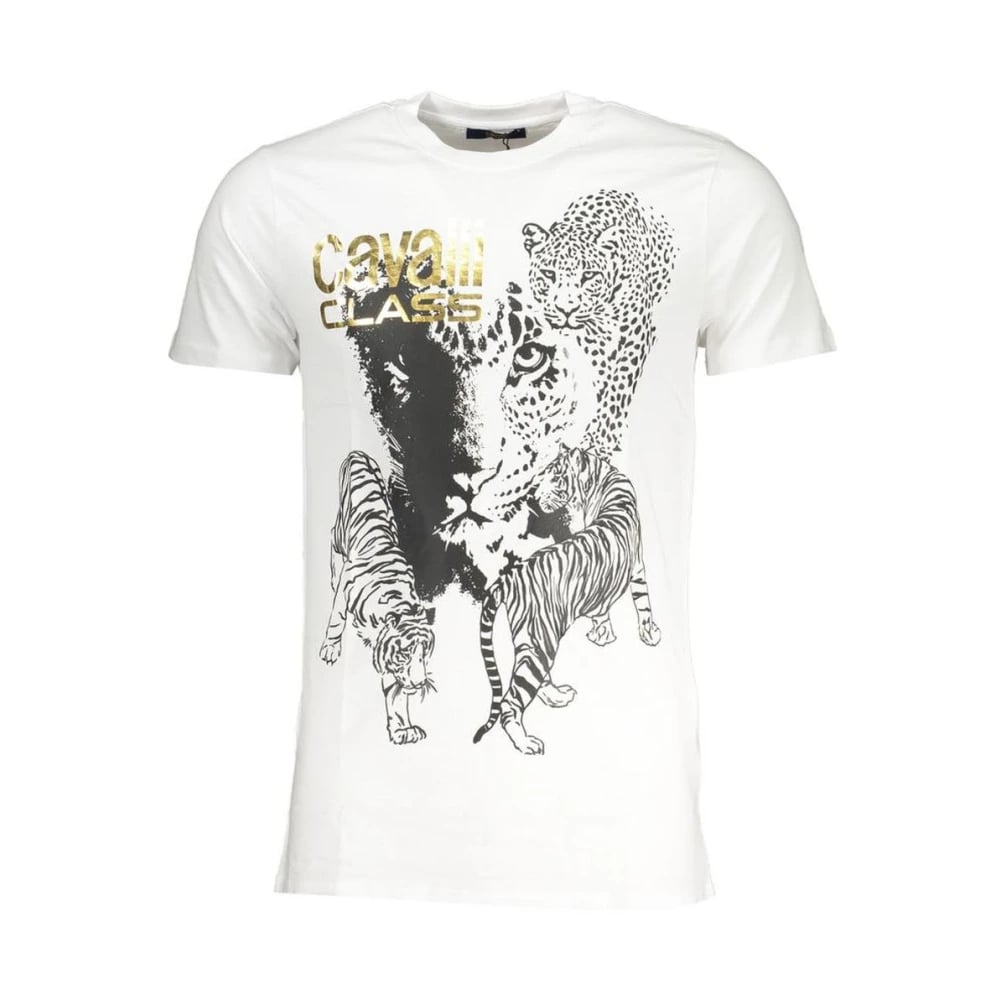 Cavalli Class, Toppar , Herr, XL, Bomull, Vit Animal Print T-shirt Crew Neck
