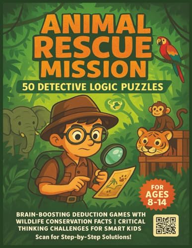 Animal Rescue Mission: 50 Detective Logic Puzzles for Kids Ages 8-14: Brain-Teasing Deduction Games with Wildlife Conservation Education | Critical ... Included | Educational Games for Family Fun