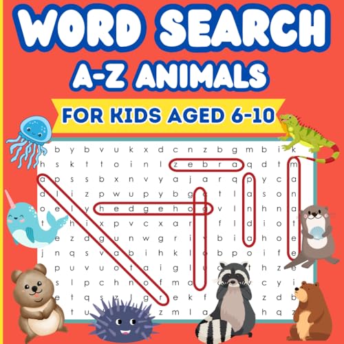 A-Z Animal Word Search For Kids Aged 6-10 (Search and Find): Fun and Educational Word Puzzles Featuring Animals A to Z, with Solutions Included