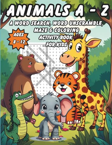 Animals A - Z: A Word Search, Word Unscramble, Maze & Coloring Activity Book for kids ages 8 - 12: Different Puzzles & Fascinating Facts to expand ... to color to spark their creativity