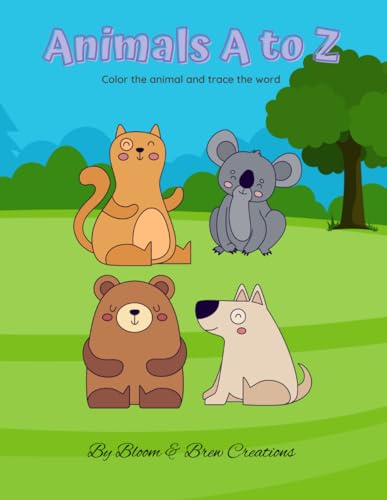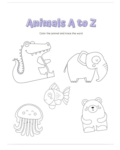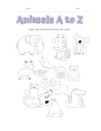 Animals A to Z, Color the Animal and Trace the Word: Fun Alphabet Coloring and Tracing Book for Kids Ages 3–6 to Learn Letters and Animal Names