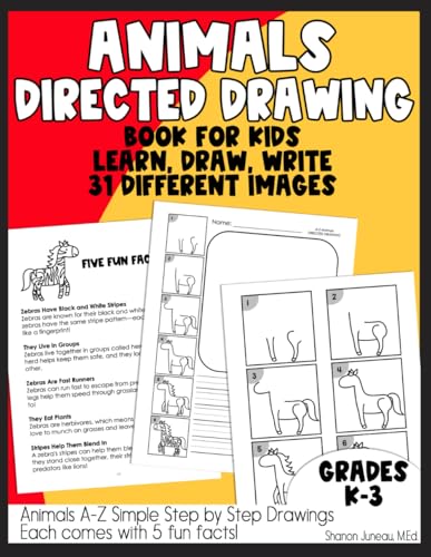 Directed Drawing Books For Kids: Simple Step By Step Drawings For Ages 5 to 10 Animals A-Z and Fun Facts