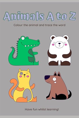 Animals A to Z colouring book for ages 3+: Colour the animal and trace the word