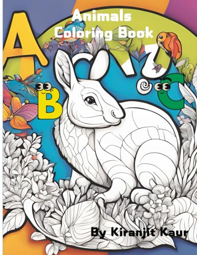 "Animals A-Z: Fun English Alphabet Coloring Book for Kids - Learn Animal Names from A to Z by Kiranjit Kaur (8.5 x 11 Inches)"