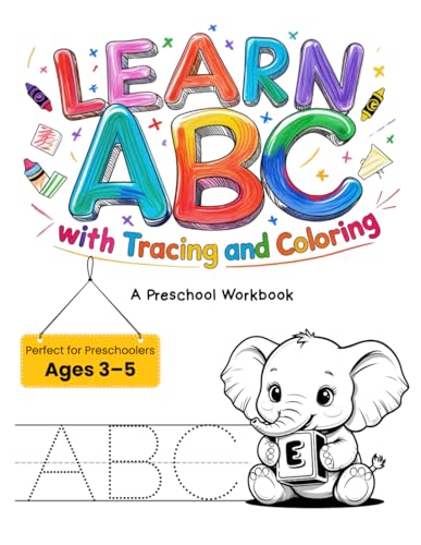 Learn ABC with Tracing and Coloring: A Fun Preschool Workbook for Kids Ages 3-5: Alphabet Handwriting Practice and Coloring Book with Big Letters, Animals, and A–Z Tracing Activities