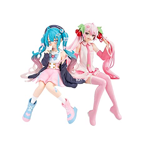 Zhongkaihua Anime figurer Miku figur sittande modell staty, 2 st actionfigur Miku pasta stopp modell, Miku figurine dekorationer samling ornament gåva 14/15 cm